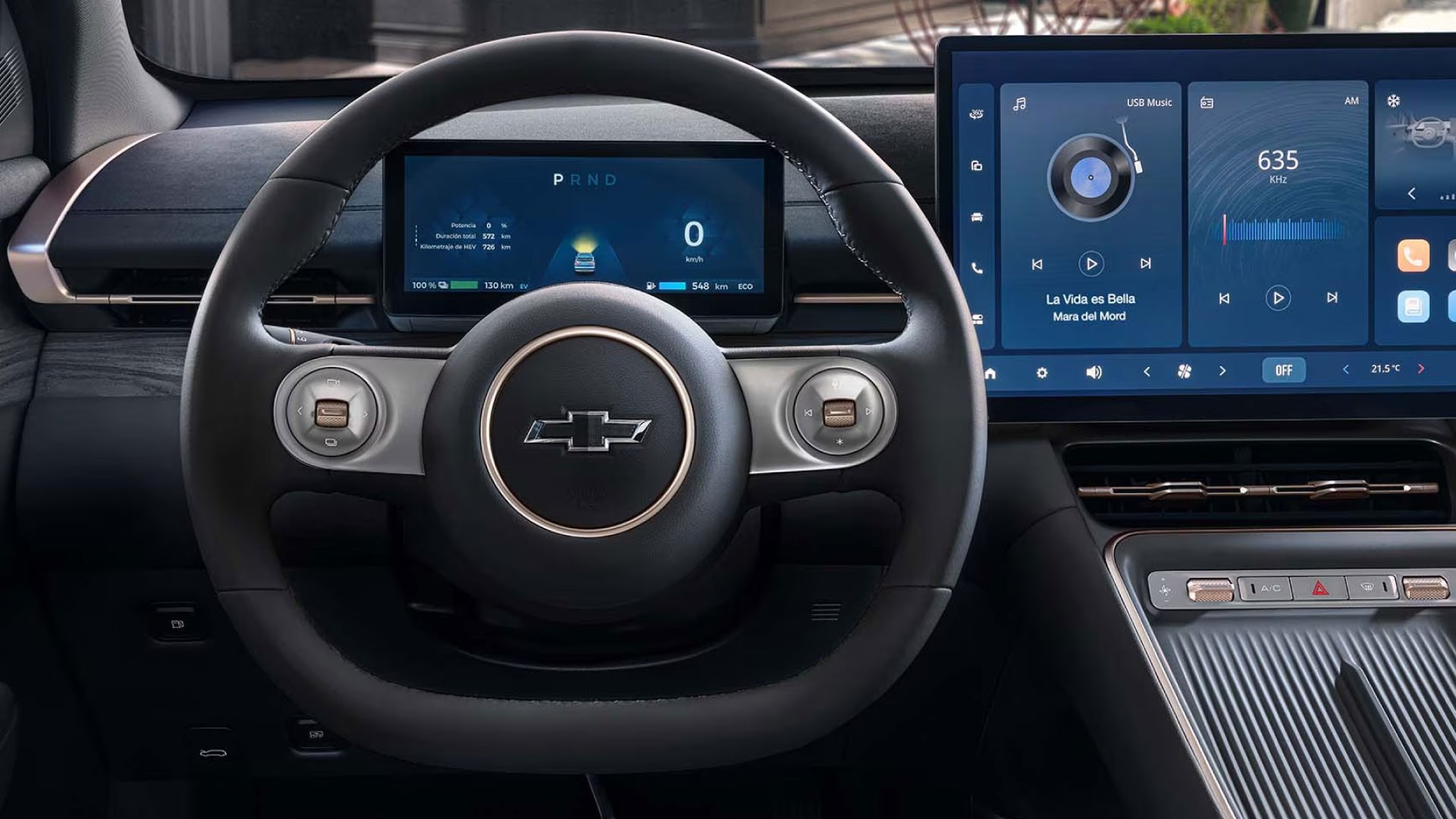 La experiencia de manejar una Captiva Híbrida se completa con una gran variedad de innovaciones de conectividad y confort. Llave inteligente, vidrios eléctricos y volante con controles de audio y llamadas son algunas de las características que conectan con tu estilo al manejar.